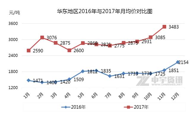 自9月国内煤焦油市场开启上行态势以来,据中宇资讯监测,本月市场已经是连续第三个月上调,并且较月初上涨750元/吨,涨幅达到23.08%,价格屡创新高,月底成功站上4000元/吨,并且市场依旧没有结束的意思,对于12月的市场场内期待值依旧较高。至于此次市场为何上涨如此猛烈,其实以前的分析中也无数次说过,主要就是因为供需紧张,在国家限产政策的大环境下,焦企开工率受限,煤焦油产出量持续减少,推动煤焦油价格上涨,而后下游成功转嫁成本压力,不但各产品跟涨顺利,厂家也存在一定盈利空间,继续助推煤焦油上行,在一系列利好因素的交错推动下,煤焦油价格才会出现目前所谓的“天价”。所以此次我们就不再过多的讨论了,马上还有一个月2017年就要结束,我们不妨在这里做个比较及回顾: