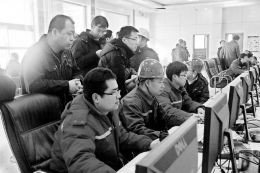 1月26日,榆天化工作人员在总控室监控60万吨煤制甲醇装置试运行情况。