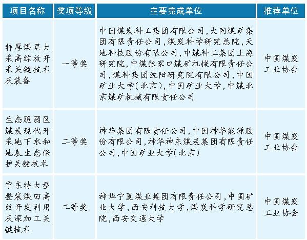 1月9日,国家科学技术奖励大会在北京人民大会堂举行。“特厚煤层大采高综放开采关键技术及装备”等6个涉煤项目获奖。
