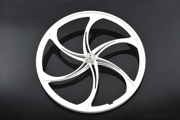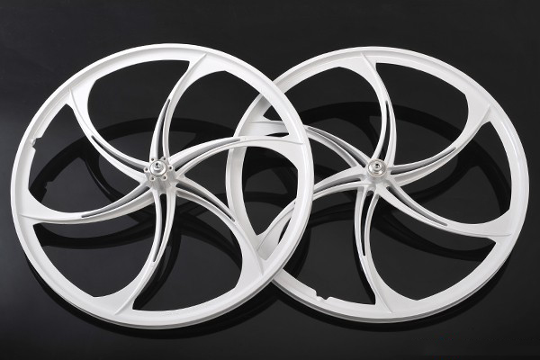 镁合金自行车一体轮组,26寸,白色,卡式2培林设计,适合21/24/27S花鼓使用,采用质轻、绿色环保的镁合金材料高压压铸而成具有重量轻、强度高不易变形等特性,且产品通过SGS检测认证。