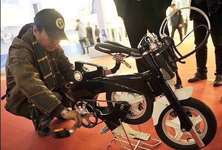 “快看,这样小的一款电动车功能还这么全,我还真是第一次见到。”一群人把正在展示智能折叠电动车的参展商王欢围得严严实实。王欢是专程来我市参加此次博览会的,他从无锡带来的这款电动车仅研发就花费一千多万元,整车仅重18公斤,性能一点也不差,看上去科技感十足,将车体完全折叠后可以轻松放入小轿车后备箱内。