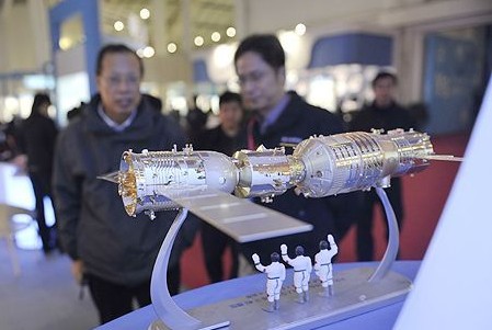 合金广泛运用于航空航天工程。图为与会人员参观各种航天模型