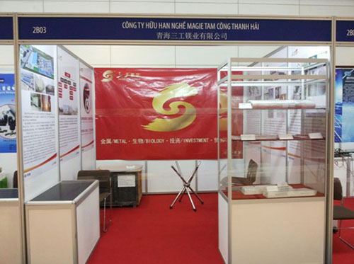 博览会上,青海三工镁业有限公司也参展了镁合金、 镁锭、 镁合金渣、 镁渣、 牺牲阳极等自己的产品,以其独特的特点、精细工艺赢得了当地人们的亲睐和好评。这次展会时间虽然短促,但销售场面却十分热闹。同时,也让企业在做好对外营销、产品展示、业务洽谈、沟通交流等诸多方面借鉴和学到了不少可贵经验,为今后参加境外这样高档次的展会奠定了基础。