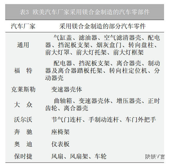 我国汽车工业用镁较晚,多处于研究开发阶段。上汽率先将镁合金用于桑塔纳轿车的变速器壳体、壳盖和离合器外壳;一汽已试制开发发动机罩盖、离合器壳、齿轮室和齿轮盖等小批量样件;二汽镁合金研发体系也已形成,投产的镁合金压铸件生产线,可批量生产载重车的变速器上盖、脚踏板、真空助力器隔板、制动阀体等零件,并已大批量装车进入市场销售。