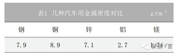 1、质量密度小。镁合金的质量密度一般在2 g/cm 3左右,比铝材轻36%,比锌合金轻73%,比钢轻77%。在汽车上使用镁合金可在很大程度上减轻汽车自身质量。