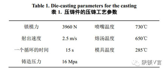 镁合金薄壁压铸件(肉厚为0.5~0.8 mm)化成处理后,在不同位置出现了数量、大小不等的白斑,如图1 所示,A 处为正常的化成膜,B 处为表面的白斑,正反面位置基本对称,呈穿透性白斑。该种白斑呈不规则岛状,分布较密。该压铸件压铸参数如表1 所示。
