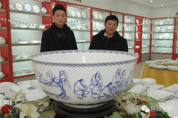 1月22日,山东淄博市民正在淄博华洋陶瓷公司展厅欣赏镁玉瓷大碗。创立于1997年的山东省淄博华洋陶瓷公司,在生产镁质瓷、骨质瓷酒店用瓷的基础上,发明了镁玉瓷,并成功开发了直径67厘米、高30厘米、厚度0.4厘米的镁玉瓷大碗。他们克服了成型、烧制等难题,历时20小时在1350度高温下烧制而成。目前,公司正准备将镁玉瓷大碗申报大世界吉尼斯之最。