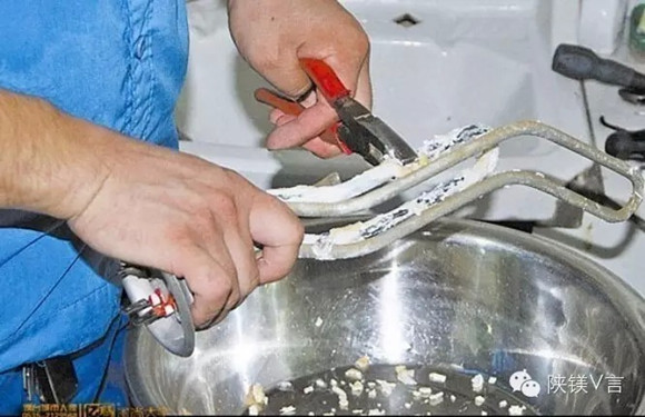 2.对内胆加热管过保护。棒使用的电位较负,一般在-1.7左右,这么高的电位在初期会使内胆和加热管电位骤增形成过保护。这样在内胆和加热管周围富集了大量离子,加速形成水垢。水垢覆盖在加热管上,影响了加热管的散热,使局部温度过热,干烧使之融化,进而形成腐蚀穿孔。有很多厂家搞不懂为什么在棒的保护下,加热管还会穿孔,其实最初的穿孔不是腐蚀,而是融化的。